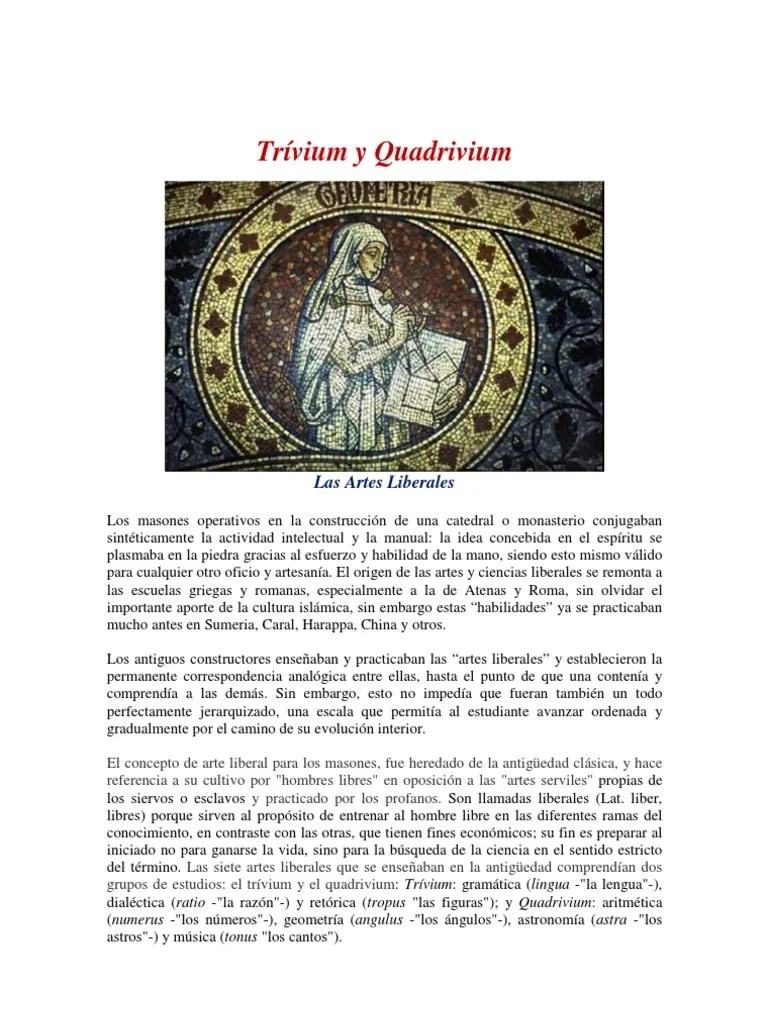 Las dos clases formaban las sietes artes liberales (septem artes liberales) y tenían bastante relación con lo que después de las guerras púnicas formaba la base de la educación de los romanos... 14.06.2016 · en verdad, las 7 artes liberales, eran conocidas mucho antes que en la edad media. Son llamadas liberales (lat.liber, libres) porque sirven al propósito de entrenar al hombre libre, en contraste con las artes illiberales, que.. Son llamadas liberales (lat.liber, libres) porque sirven al propósito de entrenar al hombre libre, en contraste con las artes illiberales, que.