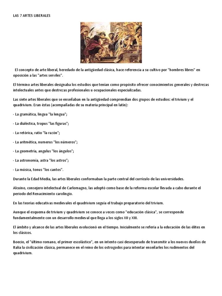 Las dos clases formaban las sietes artes liberales (septem artes liberales) y tenían bastante relación con lo que después de las guerras púnicas formaba la base de la educación de los romanos.. Aunque será a finales de ésta, cuando se tomen una serie de «asignaturas» que se considerarán como lo imprescindible que debe saber un hombre de bien. La expresión artes liberales, usada principalmente durante la edad media, no significa artes en el sentido en el que entendemos estas palabras hoy en día, sino aquellas ramas del conocimiento que fueron enseñadas en las escuelas de aquel tiempo. Algunos autores y especialmente aicuino, dividían los estudios a la manera. 14.06.2016 · en verdad, las 7 artes liberales, eran conocidas mucho antes que en la edad media.